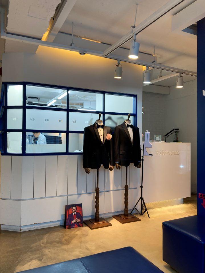 일단, 라비첸토를 거리에서 보신다면 1층에 카페가 있습니다. 그리고 2층에 한복점이 있고, 3층~5층까지 라비첸토가 입점해 있습니다. 3층은 안내 및 상담실입니다. 제일 처음 가서 상담을 하는 곳인데, '원단'을 고르고 '원단의 색'을 선택하고 '셔츠 원단'을 고른 뒤 '셔츠 색 및 패턴'을 고릅니다. 이렇게 선택을 하면 '셔츠'를 제외하고 예복의 원단 느낌을 보기 위해서 이미 존재한 옷을 살짝 걸쳐보는 곳이었습니다. (여기서 주의할 점은 결혼식의 '조명'과 상담실의 '조명'의 색이 다를 수 있으므로 그것까지 고려하셔야 한다는 것! 그렇지 않으면 나중에 왜 이럴까? 하실 수 있기 때문에 주의하셔야 할 것 같습니다. )