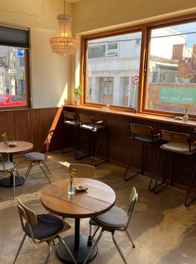 들어가는 입구 바로 옆에 편지통이 작게 있는데, 무엇인가 귀여워서 한번 찍어봤습니다. 사진을 잘 찍으신다면, 입구에서 들어가는 문과 이 편지통 사이에서 어떻게 각도를 잘 맞춰서 찍으신다면 이쁘게 나올 것 같습니다. 내부에 들어가면, 바로 카운터가 보이고, 오른쪽에 테이블이 있습니다. 테이블의 개수는 정확하게 몇 개인지 모르겠지만, 1층의 테이블의 개수는 많지도, 그렇다고 적지도 않게 적당하게 느껴졌습니다. (물론 스타벅스와 같은 프랜차이즈와 비교하면 적습니다.)