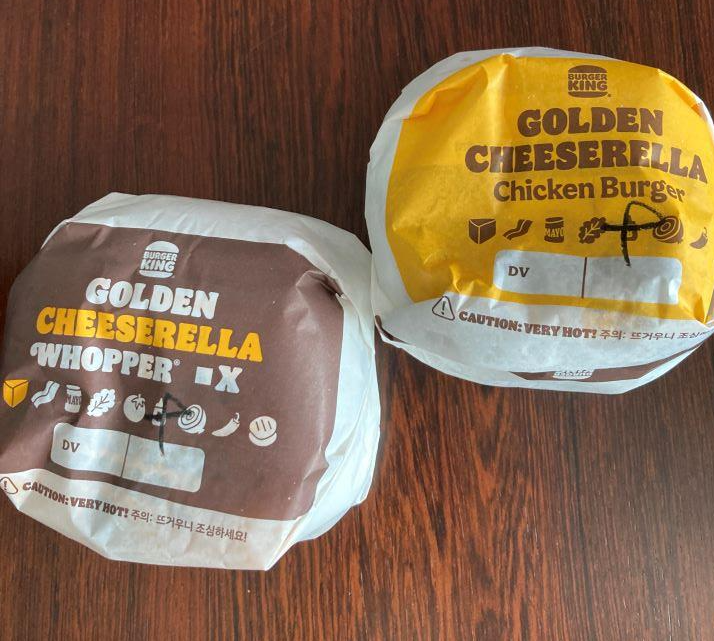 신메뉴는 총 2가지가 출시되었습니다. "골든치즈렐라 와퍼", "골든치즈렐라 치킨버거" 이렇게 2가지가 출시되었습니다. '골든치즈렐라 와퍼'는 디아블로 소스, '골든치즈렐라 치킨버거'는 불고기소스가 들어갔습니다. 그래서 그런지 '골든치즈렐라 와퍼'가 살짝 더 맵습니다.