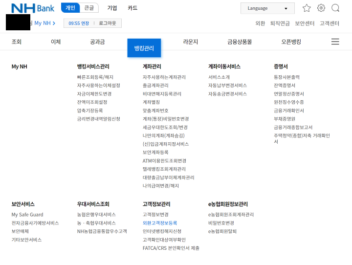 NH농협의 외화계좌의 영문 이름을 확인하기에 앞서 무조건 외화계좌의 존재 유무를 확인하고 없으면 개설을 할 것을 추천드립니다. 저는 주식 때문에 농협 외화계좌를 이미 개설해서 만들어 두었는데, 수수료 및 우대율을 고려하여 만들면 더 좋기 때문에 다른 은행들을 확인하고 자기에게 맞는 계좌를 개설하는 것이 가장 좋습니다.